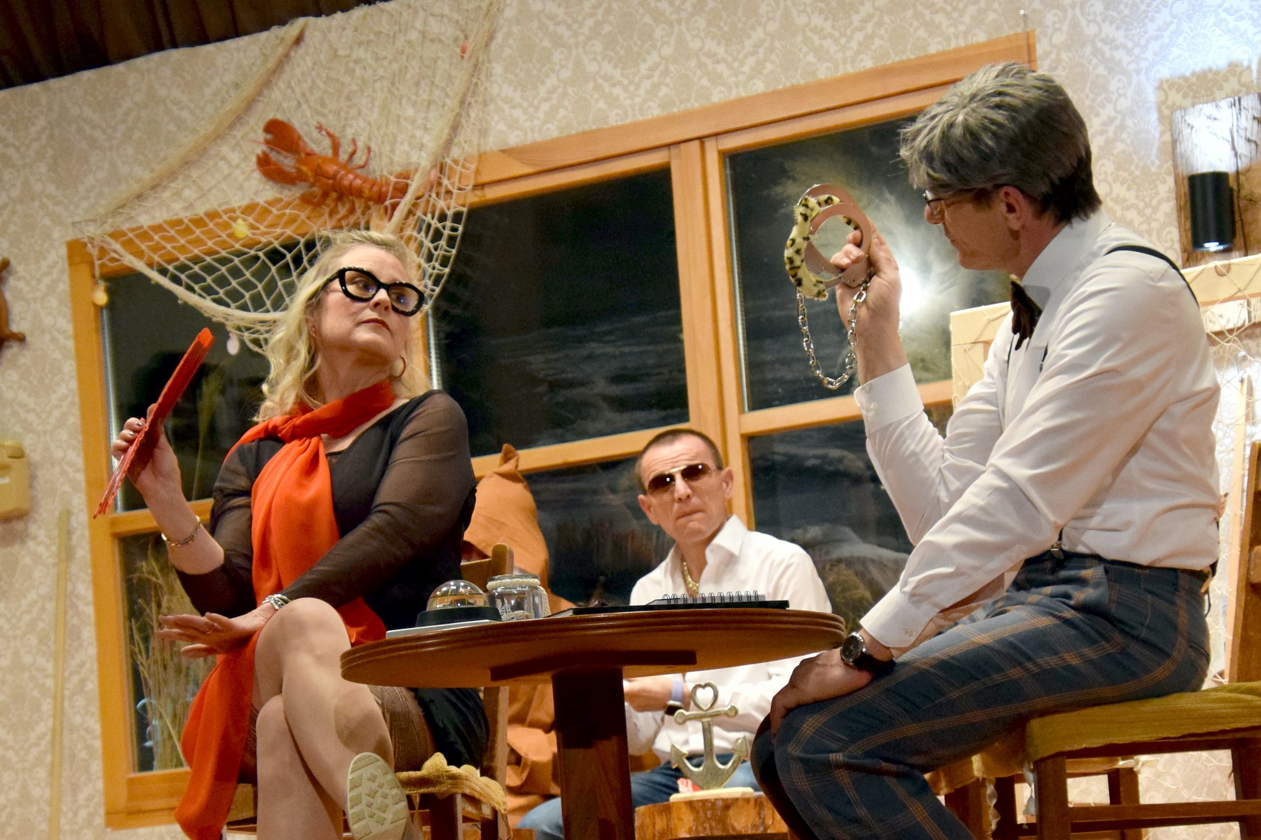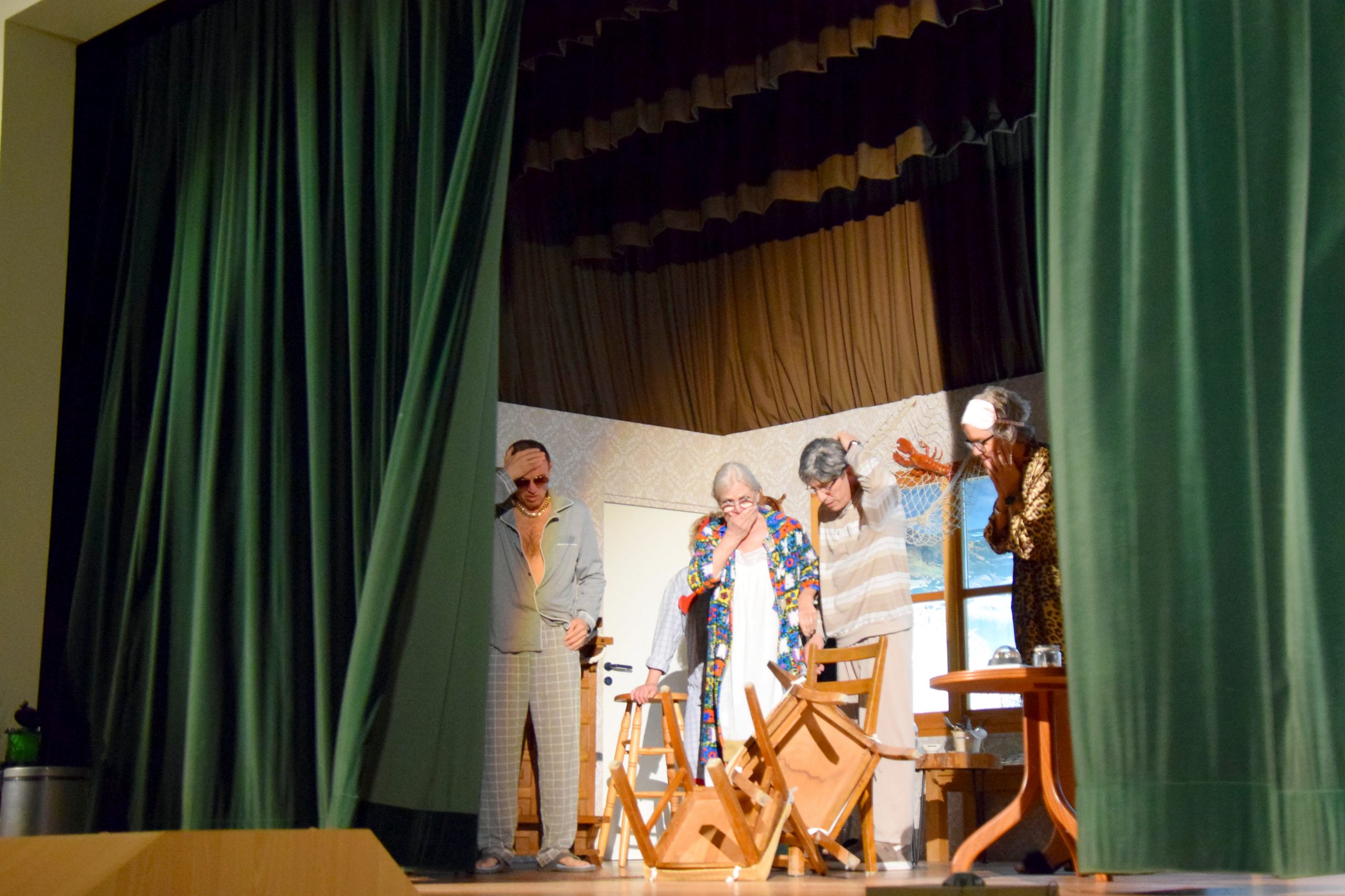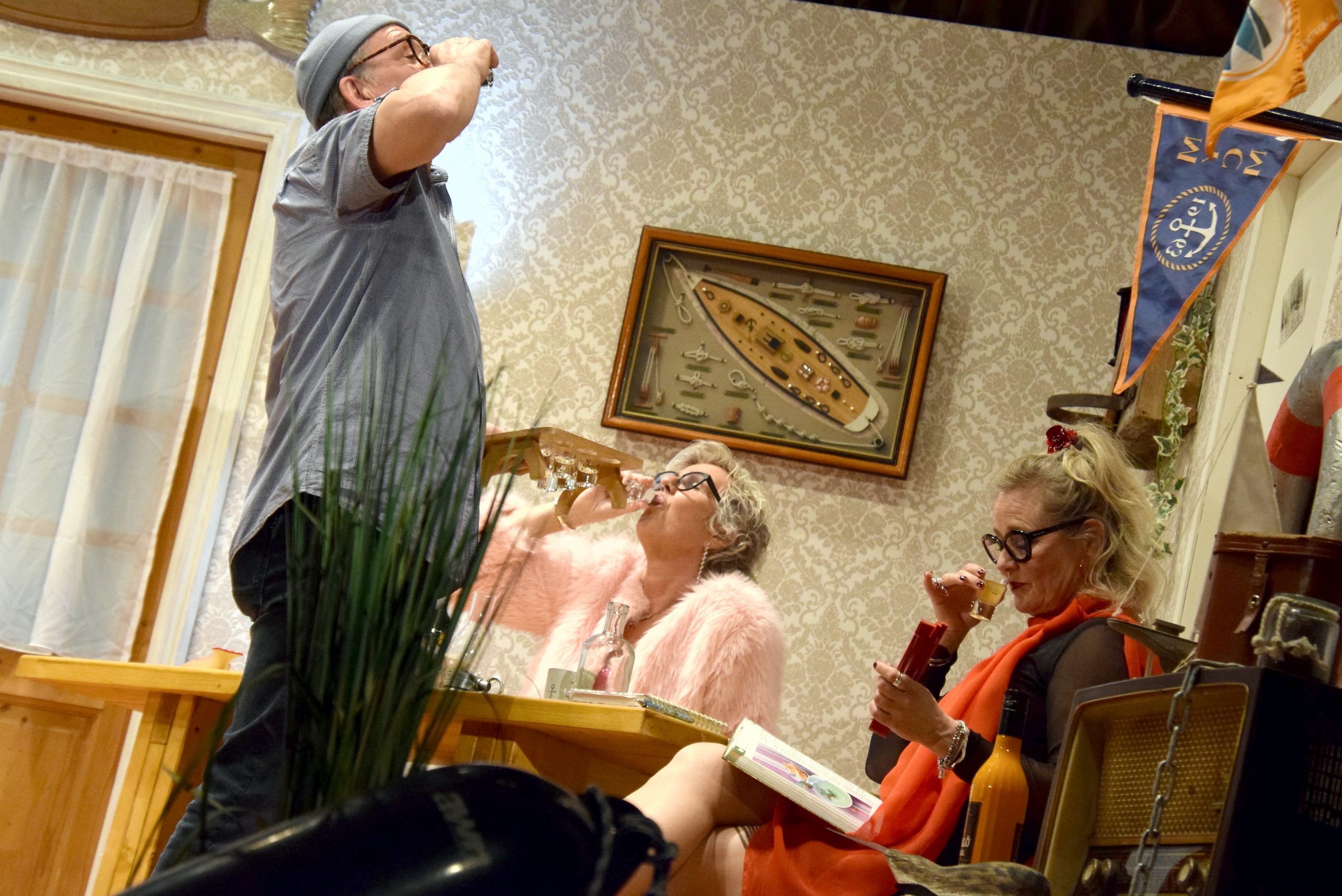 Unterdessen versorgte Hein sich und die Hotelgäste mit reichlich selbstgepanschten Sanddornlikör. Davon benebelt bahnte sich eine Liaison mit Martha an. Ziemlich angetüdelt fieberte das gesamte Ensemble feuchtfröhlich dem Finale entgegen.