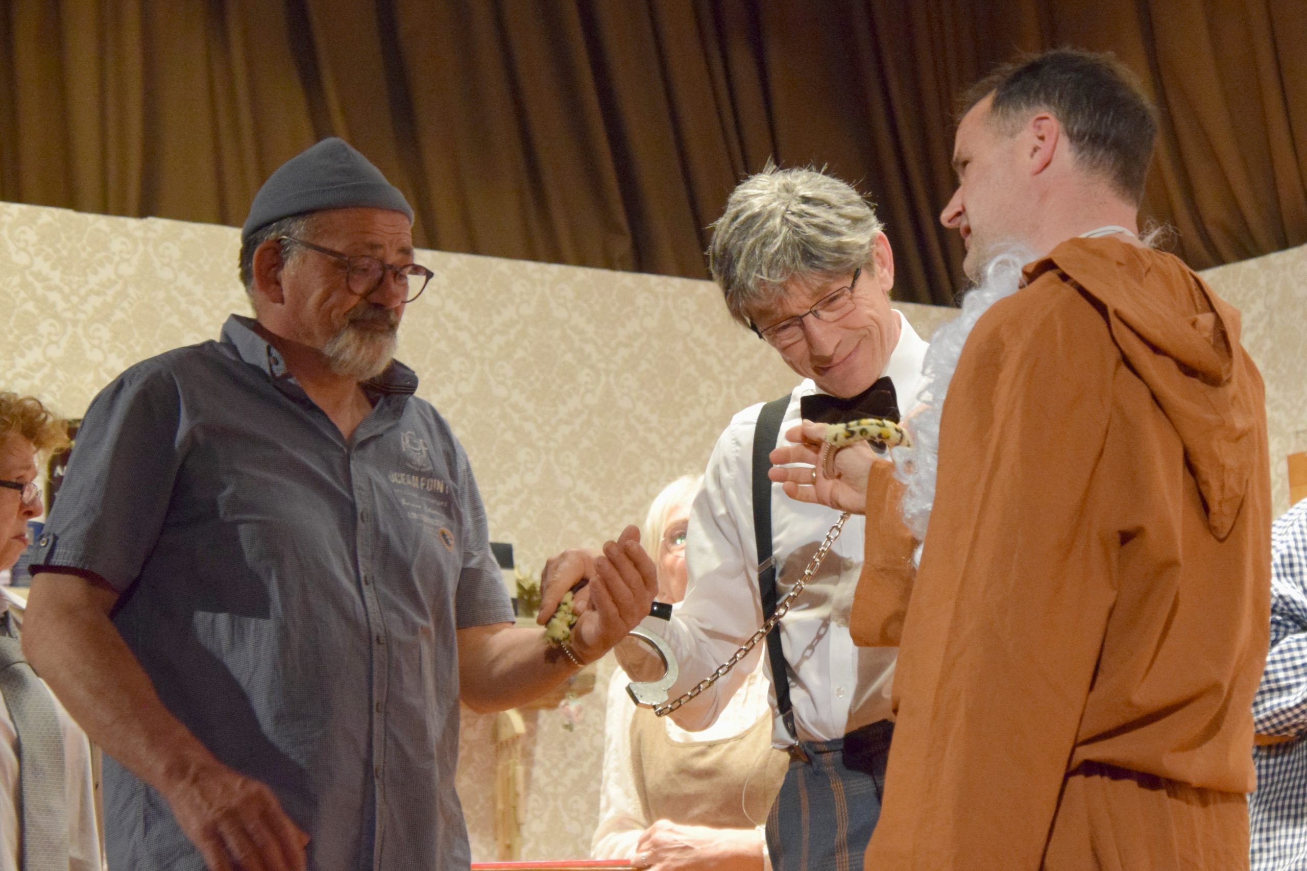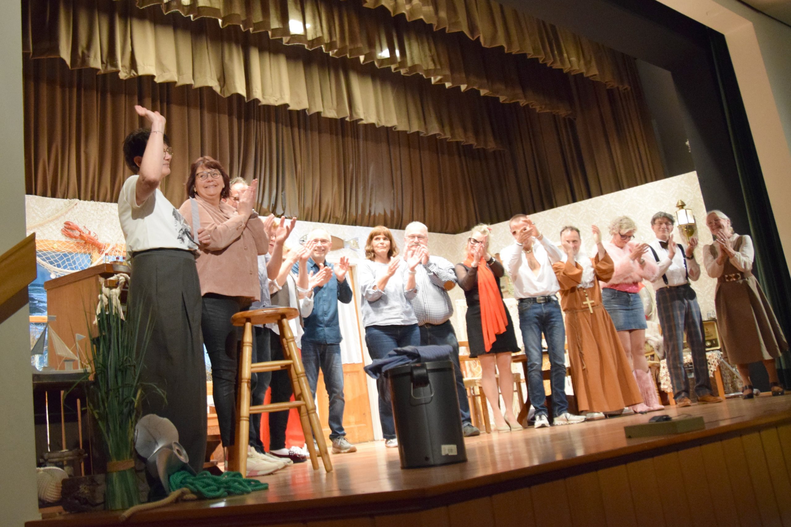 In drei ausverkauften Vorstellungen hat die Theatergruppe Neuenbeken am vergangenen Wochenende ihrem begeisterten Publikum mörderischen Spaß mit der Krimikomödie “Nur der Hering war Zeuge” geboten. Auf der Bühne in der Aula des Missionshauses löste Alt-Kommissar Stringer drei Mal einen vermeintlichen Mordfall im friesischen Inselhotel – allerdings unter erheblichem Tohuwabohu mit den mysteriösen Hotelgästen, dem Personal, seiner nervenden Gattin, viel zu viel Sanddornlikör und nicht zuletzt unter heftigen Lachsalven. Das neue Stück des ostfriesischen Autors Wolfgang Santjer präsentierten die Neuenbeker Schauspielerinnen und Schauspieler als Uraufführung.