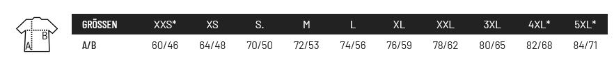 Die Größenermittlung bei Textilien erfolgt am besten durch den Vergleich der Maße eines gut passenden eigenen Shirts oder Hoodies mit den Angaben in der jeweiligen Größentabelle. Breiten Sie dazu ein Shirt/Hoodie, das Ihnen perfekt passt, auf einer ebenen Fläche (Tisch oder Boden) aus und streichen Sie es glatt. Messen Sie die Linien A,B oder C wie in den Größentabellen der Hersteller angegeben und gleichen Ihre Maße mit der Tabelle ab.